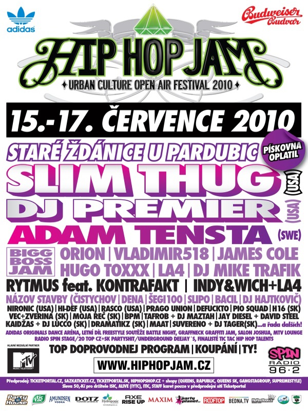 Máme tu pro Vás kompletní časový line up na červencový hip hopový festival Hip Hop Jam, který se uskuteční již za 3 týdny od 15.-17. července ve Starých Ždánicích u Pardubic.