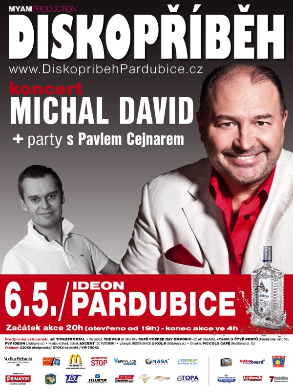 V pátek 6. května 2011 přijíždí do Pardubic zcela nová mega live show pod názvem „Diskopříběh Pardubice“. Dvouhodinový koncert hitmakera Michala Davida a jeho největších hitů. Můžete se těšit na největší pecky jako Nonstop, Největší z nálezů a ztrát, Pár přátel, Colu,pijeme colu, Nenapovídej, Chtěl bych žít, Discopříběh, Každý mi tě lásko závidí, Líbezná, Decibely lásky, Céčka …