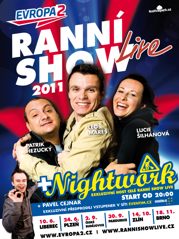 Tradiční roadshow Evropy 2 „Ranní Show Live“ dostane v letošním roce zbrusu novou podobu díky exkluzivní spolupráci s kapelou Nightwork.