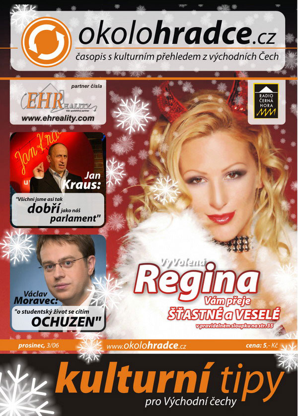 Nechybí pravidelný sloupek VyVolené Reginy; tentokrát vyprávěla o svém malování na nahá ženská těla. Stále pokračuje soutěž vánoční FOTOmánie o pohádkový víkend na horách a navíc jsme přidali konzumaci ve vrchlabských restauracích a relaxační den v Lázních Velichovky.