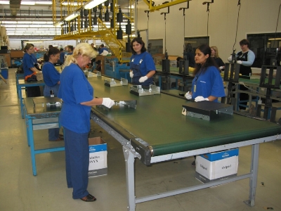 První hala - montážní linka PC sestav HP. Všude spousta lidí, čilý ruch. Jen skladníkům bych z těch vozíků nejradši utrhal klaksony, protože se naučili je hojně využívat a když někdo zatroubí třikrát za sebou, když to nečekáte, začne vás to nervovat :) Prohlédli jsme si tedy výrobní linku, testování sestav, sklad komponent... Jen mi přišlo, že na některé činnosti je tam poměrně dost lidí. Nevím, jak to běžně chodí, ale myslím si, že na zabalení počítače do krabice není potřeba 5 lidí...