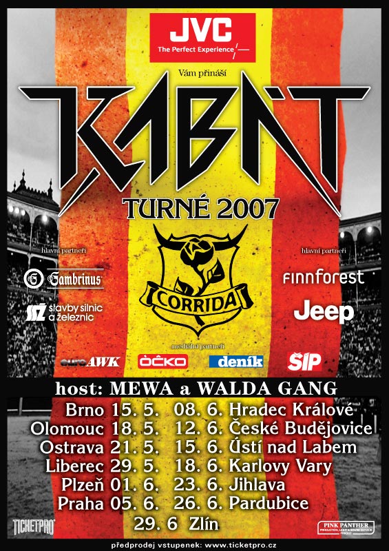 Koncertní turné Corrida 2007 skupiny Kabát, proběhne od poloviny května do konce června po celé České republice. Jako předkapely vystoupí teplická crazy rocková skupina Mewa a Walda Gang, revival Waldemara Matušky.Skupina Kabát za dlouhou dobu svého působení získala významné místo mezi českými rockovými skupinami a v současné době tvoří vrchol tohoto hudebního zaměření v ČR. Skupina má uzavřenou exkluzivní smlouvu s firmou EMI Czech Republic s.r.o. na vydávání alb.
