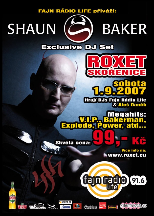 Přesně na konci letních prázdnin, vystoupí přední německý DJ a producent SHAUN BAKER v prestižním východočeském clubu ROXET - Skořenice. SHAUN BAKER má na svém kontě mnoho prodaných singlů a alb. Mezi jeho největší taneční hity jistě patří singly "On A Hellium Trip", "Sex On The Streets", "Explode", "Explode 2", "Push / Deep" a především aktuální megahity "Bakerman" a "V.I.P", které bodují mezi nejhraněšími tanečními hity v CZ rádiích.