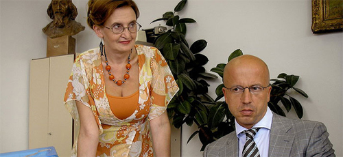 Tahle bizarní sestava vstupuje do konfliktů s těmi „free, cool a in“ existencemi, co kouří před gymplem a probíranou látku mají proklatě nízko u pasu. Příliš mnoho dobrého z jejich vzájemné tenze nevzniká. Nedochází mi, proč Vorel stylizuje kantory toliko sveřepě do uřvaných asociálních idiotů – daleko tím překračuje míru pro úsměvnou nadsázku, kvůli plochosti a přebuzenosti jednotlivých typů pak i předem znemožňuje, aby z interakce s mladými vzešel dobrý fór, natož nezapomenutelný gag. Gympl nemá žádný svůj „Ó, Tannenbaum“, žádné „Třináctka! Fuj, tu nechci!“, žádného „šejka Peterku“, žádné „hrdobce“. Naopak vykazuje Tomáše Vorla v roli školníka, jenž s falešným knírem a podivným hlasem pobíhá po škole, buzeruje kvůli přezůvkám studenty a nechá si „namasírovat“ varlata. Vedle něj pak také inspektora Pavla Teličku, což je možná sympaťák vhodný pro přední příčky žebříčku nejoblíbenějších politiků, hereckého talentu však pobral tolik co já ... a to není pochvala! To je varování, ať před už sakra NIKDY neleze před kameru! (Pravda, jeho pád na chodník by mohl být alespoň stejně kultovní jako pád z kola ve Vratných láhvích.)