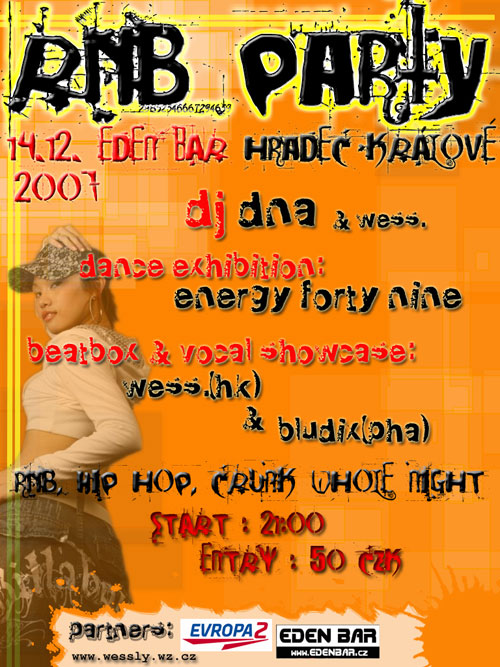 V pátek 14.12. 2007 se v Hradeckém baru EDEN bude konat další nadupaná RnB party.
