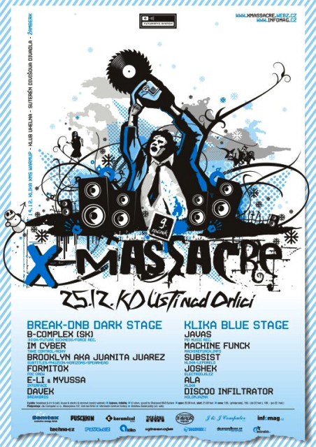 Vánoce se nezadržitelně blíží, a to mimo jiné znamená, že se blíží devátý ročník vánoční party Xmassacre, který proběhne 25.12.2007! Konat se bude tradičně v ověřených prostorách kulturního domu v Ústí nad Orlicí, opět pod taktovkou agentury Futuristic System. Osvědčený koncept z minulého roku zůstane zachován. Ve velkém sále vás po celou noc neopustí zlomené rytmy, zatímco Modrý salonek nabídne přehlídku rovných stylů, minimalem počínaje a technem konče. Ale pozor. Není techno jako techno, schranzových laskomin se zde opravdu nedočkáte.