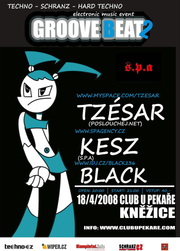 Uspořádat první díl akce Groove Beat se zrodil v roce 2007 v hlavách djs Tzésara a Blacka. Akce dopadla na výbornou a tak skoro do roka a do dne je tu druhý díl, který ovšem změnil místo konání. Tentokrát budou beaty dunit 18.4.2008 v klubu U Pekaře v Kněžicích u Nového Bydžova.