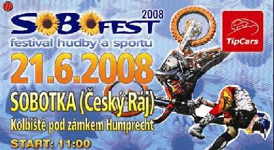Sobofest je na české festivalové scéně nováčkem. Avšak není pouze dalším z dlouhé řady malých lokálních festiválků. Nabízí něco víc. Přináší totiž unikátní propojení show světového kalibru s klasickým menším hudebním festivalem, vesnickým jarmarkem a sportovním dnem nejen pro děti. Sobofest láká na světovou show a domáckou atmosféru. Vše vypukne 21.06.08 od 11:00 – 24:00 v areálu kolbiště pod zámkem Humprecht – Sobotka – Český Ráj.