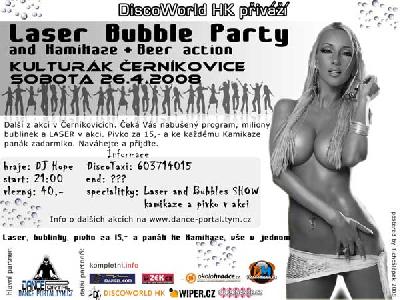 Další ze skvělých párty v Černíkovicích u Solnice. Minule nás navštívila RnB Dance Party v podání DJ Hopa a taneční skupiny MAD style, ale teď to bude jinak. Celý večer bude sál kulturního domu v Černíkovicích zaplňovat miliony bublinek a bublinky prosvítí laserová show. Komu tohle ovšem stačit nebude zajde si k baru, kde si může objednat Kamikadze a dostane pánáka zdarma a nebo pivečko Kozlíka desítku za 15,-.