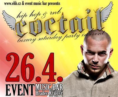 Zmeškali jste březnovou Coctail párty v Eventu? Je tu další šance - 26.4. se koná další pokračování unikátního hip hop&rnb večera. Žádní rnb start-stop djs, jak je v Hradci Králové zvykem. Čekejte nekompromisní párty coctail smíchaný ze stylů jako je hip hop, rnb, crunk, grime, house či dance